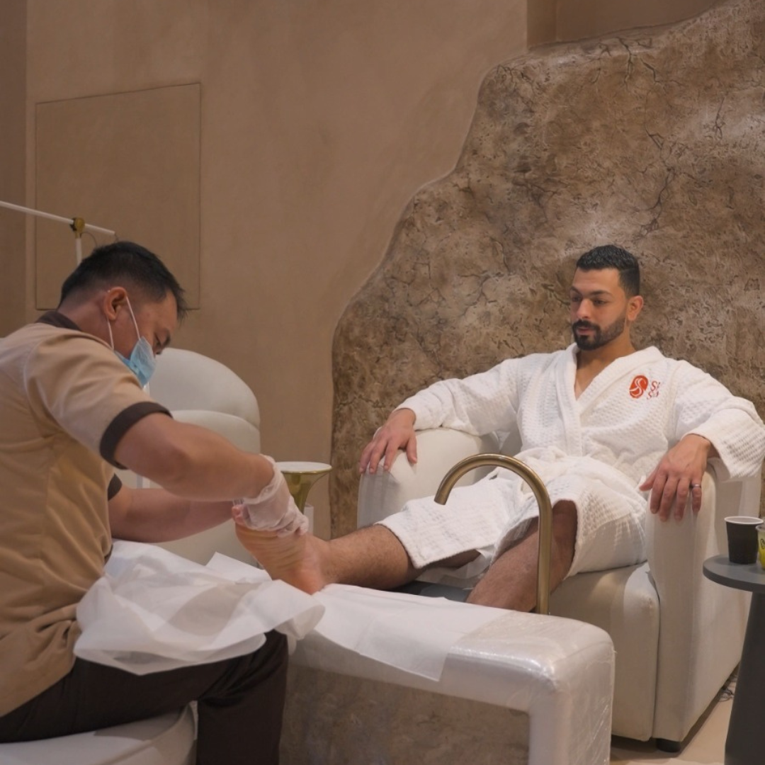 ابدأ لحظتك بالاستمتاع بمشروبك المفضل ثم تصفح قائمة خدماتنا المتنوعة التي صممت بعناية لتناسب احتياجاتك المختلفة. وإذا رغبت سيقوم فريقنا من الخبراء بمساعدتك على الكشف وتشخيص أماكن التوتر والإرهاق في جسدك وتحديد نوع الجلسة الأنسب لك سواء للاسترخاء أو لتخفيف الآلام